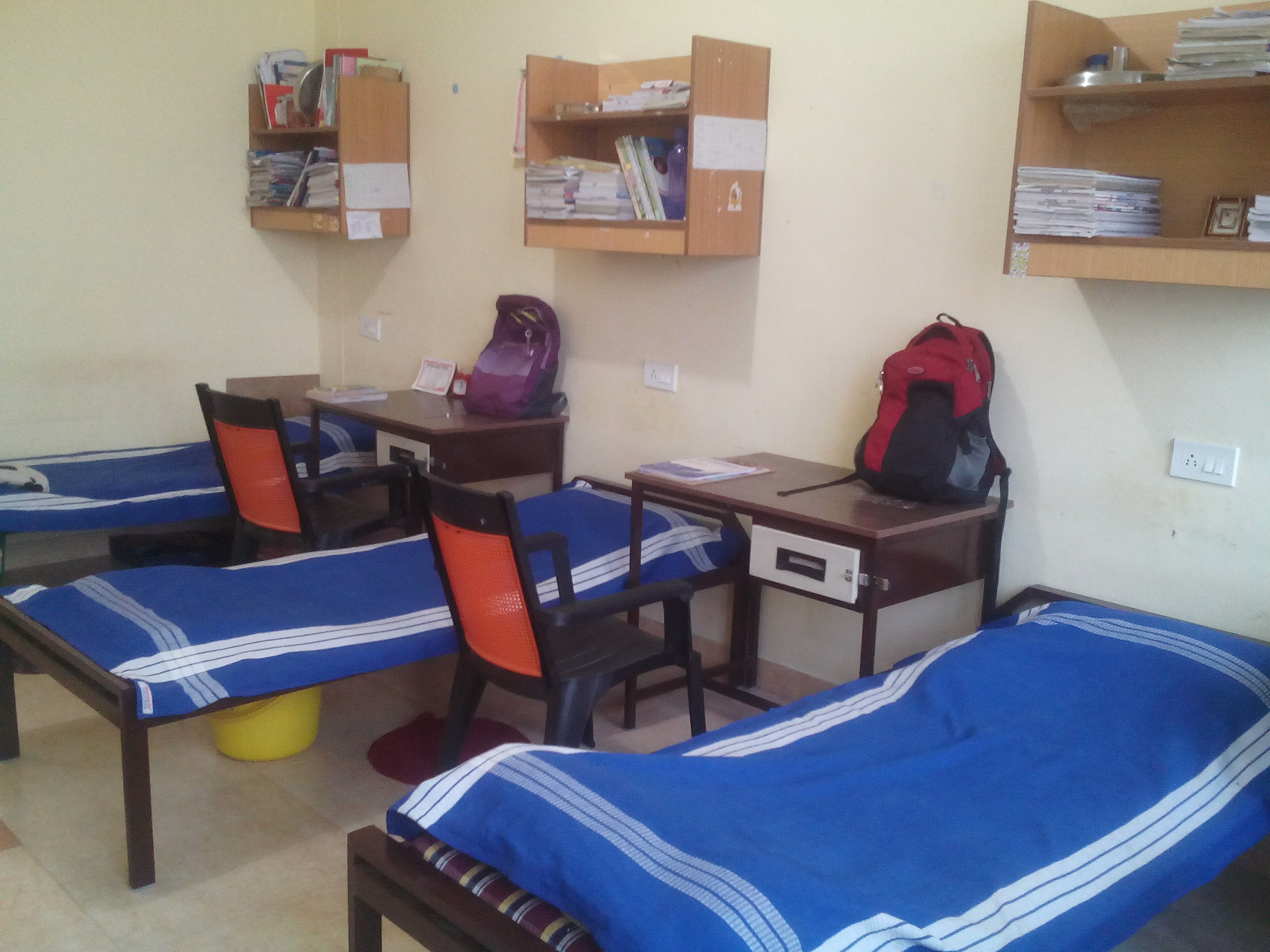 - Every room is furnished with cot, chair, table, Shelf